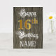 A frente deste design de cartão de saudação de aniversário formal e de ornamentado apresenta a mensagem "Feliz 16º aniversário", além de um nome de destinatário editável. Parte da mensagem está no texto elaborado no estilo de script. O grande número "16º" apresenta um padrão de aparência inspirado em ouro de imitação/falsa. O fundo tem uma imitação/padrão falsa inspirado em madeira. O dentro tem uma mensagem de saudação de aniversário personalizada, ou talvez pudesse ser apagado e deixado vazio se uma mensagem fosse escrita manualmente. Um elegante e personalizado cartão de cumprimentos de aniversário como este poderia ser enviado para celebrar o décimo sexto aniversário de alguém. [~Z0000561]