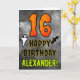 A frente deste assustador e assustador design do cartão de cumprimentos de aniversário do Hallowe'en temed apresenta um grande número "16". Também apresenta a mensagem "FELIZ ANIVERSÁRIO", além de um nome personalizado. Há também representações de um fantasma e um morcego na frente. O dentro apresenta uma mensagem de saudação de aniversário personalizada, ou talvez possa ser apagado e deixado vazio se uma mensagem for escrita manualmente. Um cartão de aniversário personalizado como este pode ser uma maneira divertida de enviar desejos de aniversário a alguém que comemora seu décimo sexto aniversário e que também foi nascer no dia 31 de outubro (Halloween). [~Z0000547]