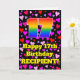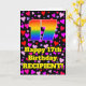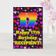 A frente desta alegre e alegre design de cartões de saudação com tema de aniversário apresenta um grande número "17" com um padrão inspirado no gradiente do espectro arco-íris. Também apresenta a mensagem "Feliz 17.º aniversário", e um nome personalizável. O fundo da frente apresenta um padrão de formas cardíacas com cores como vermelho, rosa e roxo. O dentro tem uma mensagem de saudação de aniversário personalizada, ou talvez pudesse ser apagado e deixado vazio se uma mensagem fosse escrita manualmente. Um cartão de boas-vindas de aniversário alegre e editável como este pode ser enviado para comemorar o 17º aniversário de alguém. [~Z0000551]