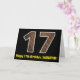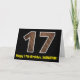 A frente deste design de cartão de saudação temático de aniversário divertido e rústico apresenta um grande número "17" com um padrão de aparência inspirado em madeira de imitação, junto com a mensagem "Feliz 17.º Aniversário", e um nome personalizável. O dentro apresenta uma mensagem de saudação de aniversário personalizada, ou talvez possa ser apagado e deixado vazio se uma mensagem for escrita manualmente. Um cartão de aniversário personalizado como este pode ser uma maneira divertida de enviar uma mensagem em comemoração do décimo sétimo aniversário de alguém. [~Z0000431]