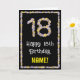 A frente desta divertida e inspirada na natureza, design de cartões de saudação com tema de aniversário, tem a mensagem "Feliz 18º Aniversário," junto com um nome de destinatário personalizável. O grande número "18" e a fronteira na frente são ambos constituídos por ícones de flor. O dentro tem uma mensagem de saudação de aniversário editável, ou talvez possa ser apagado e deixado vazio se uma mensagem for escrita manualmente. Um cartão floral e personalizado de saudação de aniversário como este pode ser uma maneira divertida de entregar cartões de aniversários a alguém que comemora seu décimo oitavo aniversário. [~Z0000648]