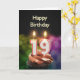 Um bolo de aniversário com velas. As velas são compostas pelo número 19, para um aniversário de 19 anos. Um cartão de aniversário adequado para todos.