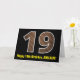 A frente desta design de cartões de saudação, tema de aniversário, rústico e divertido, apresenta um grande número "19", tendo um padrão de aparência "faux wood grain" inspirado, junto com a mensagem "Happy 19th Birthday", e um nome personalizado. O dentro apresenta uma mensagem de saudação de aniversário personalizada, ou talvez possa ser apagado e deixado o vazio se uma mensagem for escrita manualmente. Um cartão de aniversário personalizado como este pode ser uma maneira divertida de enviar desejos de aniversário a alguém que comemora seu décimo nono aniversário. [~Z0000431]