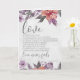 Citação inspiradora de escrituras no cartão de parabéns de casamento retrata um desenho elegante de aquarela floral com flores de pêssego e lavanda e folhas prateadas em um fundo cinza. Apresenta os versículos da Bíblia 1 Coríntios 13:4-8, "O amor é paciente, o amor é bondoso. Não inveja, não se vangloria, não se orgulha. Não é rude, não é egoísta, não se irrita facilmente, não guarda registro dos erros. O amor não se deleita com o mal, mas se alegra com a verdade. Sempre protege, sempre confia, sempre espera, sempre persevera. O amor nunca falha." O cumprimento interno pode ser personalizado e o cartão usado para várias ocasiões.