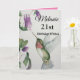 Celebre sua aniversário de 21 anos com um elegante design de beija-flor em um cartão de saudação bonito. Criada da minha pintura de aquarela original, a linda imagem de pássaros e flores iluminará o dia para observadores de pássaros, jardineiros e amantes da natureza. A mulher especial em sua vida amará as cores pastel do creme, rosa e verde-rosa pintado no estilo flexível e realista da arte botânica.
