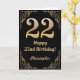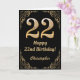 22º Aniversário, Preto e Dourado Quadro Luminoso. Para mais personalização, clique no botão "Personalizar" e use nossa ferramenta de design para modificar este modelo.