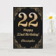Cartão 22º aniversário - Quadro negro e Dourado de brilho