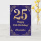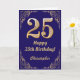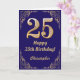 Cartão 25 Birthday Marinho Azul e Dourado Quadro Glitter