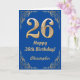 Cartão 26.º aniversário - Quadro Azul e Dourado para a Gl