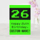 Cartão 26.o aniversário: Nerdy / Geeky Style "26" e Nome