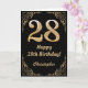 Cartão 28.º aniversário - Quadro negro e Dourado com bril