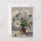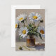 Um buquê de margaridas é disposto num simples frasco de vidro, com as pétalas brancas e os centros amarelos bem visíveis. A peça de luz e sombra cria uma atmosfera serena e natural.