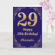 Cartão 29º aniversário do Marinho Azul e Dourado quadro d