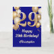 Cartão 29º Aniversário Marinho Azul e Balões Dourados Con