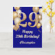 29º Cartão de Confetti de Balões Azuis e Dourados de aniversário. Para mais personalização, clique no botão "Personalizar" e use nossa ferramenta de design para modificar este modelo.