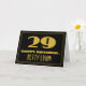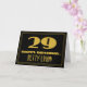 O design da frente deste cartão de aniversário com tema de look vintage e inspirado nos anos 20 apresenta um grande número "29" com aparência art déco, a mensagem "FELIZ ANIVERSÁRIO", um nome editável e um padrão de borda composto por linhas. A frente também tem um fundo preto. O interior apresenta uma mensagem de aniversário personalizável ou pode ser deixado em branco se uma mensagem for escrita à mão. Um cartão de aniversário personalizável como este pode ser uma maneira divertida de enviar uma mensagem em celebração dos 29 anos de alguém.
