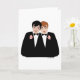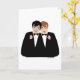Cartões de casamento, produtos de papel e presentes de cerimônia de compromisso personalizáveis para o casamento gay de dois noivos casando-se, um com cabelo preto e outro com cabelo castanho. Personalize esses presentes do dia de gay do casamento adicionando seu próprio toque personalizado, como os nomes do noivo ou a data do casamento. Encontre presentes de excelente para gay se casarem.