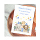 This 2nd birthday card is suitable for twin boys or a single boy. The design includes the number 2 in blue, a watercolour safari elephant, giraffe and lion, party balloons, hats, gifts and stars.