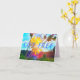 Declaração LIVE ao vivo sobre minha foto do céu azul e sol através de flores silvestres amarelas no campo verde da floresta no CARTÃO PEQUENO, colorida e dentro vazio com envelope