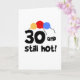 Três balões e texto que diz "30 e ainda quente!" estão em cartões de aniversário de 30 anos, T-shirts, canecas, botões e muito mais.