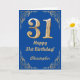 Cartão 31º Aniversário - Quadro Azul e Dourado