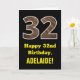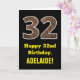Esta divertida e rústica design de cartões de saudação de aniversário apresenta um grande número "32" com um padrão de estilo de fibra falsa inspirado em madeira na frente. A frente também apresenta a mensagem de saudação de aniversário "Feliz 32º Aniversário", e um nome de destinatário personalizável. O dentro apresenta uma mensagem de saudação de aniversário personalizada, ou talvez possa ser apagado e deixado o vazio se uma mensagem for escrita manualmente. Um cartão de aniversário personalizado como este pode ser uma maneira divertida de enviar desejos de aniversário a alguém que comemora seus trinta e dois anos. [~Z0000433]