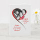 Um cartão de aniversário de bodas muito romântico e elegante para o seu marido. Adicione uma foto para tornar este cartão totalmente único. Um coração vermelho envolve sua foto com rosas vermelhas espalhadas ao redor.