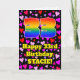 A frente deste feliz e alegre design de saudação de aniversário apresenta um grande número "33" com um padrão inspirado no gradiente do espectro arco-íris. Também apresenta a mensagem "Feliz 33º Aniversário", e um nome personalizado. O fundo da frente apresenta um padrão de formas cardíacas rosa, vermelha e roxa. O dentro tem uma mensagem de saudação de aniversário personalizável, ou talvez pudesse ser apagado e deixado o vazio se uma mensagem fosse escrita manualmente. Um bom e editável cartão de cumprimentos de aniversário como este pode ser uma maneira divertida de enviar alguns desejos de aniversário a alguém que está celebrando seu trinta e três anos. [~Z0000551]