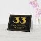 Esta era dos 20 anos itinerantes inspirou-se e o design de cartões de aniversário de aparição de vintage apresenta uma grande aparência de deco de arte inspirada no número "33", a mensagem "Feliz 33º Aniversário", um nome personalizável e um padrão de borda composto por linhas finas na frente. O fundo da frente é preto colorido. O dentro tem uma mensagem de saudação de aniversário personalizável, ou talvez pudesse ser apagado e deixado o vazio se uma mensagem fosse escrita manualmente. Um cartão de saudação de aniversário personalizado como este pode ser uma maneira divertida de entregar uma mensagem de saudação de aniversário a alguém que está comemorando seus trinta e três anos. [~Z0000498]