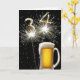 Festas com um confete de ouro e uma caneca de cerveja no 34º aniversário. A cor preta do plano de fundo pode ser alterada. O texto dentro é editável.