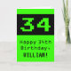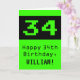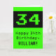 Cartão 34.o aniversário: Nerdy / Geeky Style "34" e Nome