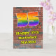 Este design de cartão de saudação de aniversário divertido e excitante grafite urbano e arte de rua inspira um grande número "35" com um padrão colorido inspirado no espectro do arco-íris, junto com a mensagem "Feliz 35 de aniversário", e um nome personalizável. O fundo da frente apresenta um padrão de parede de tijolos. O dentro apresenta uma mensagem de saudação de aniversário personalizada, ou talvez possa ser apagado e deixado o vazio se uma mensagem for escrita manualmente. Um vibrante e personalizável cartão de cumprimentos de aniversário como este pode ser uma maneira divertida de enviar alguns desejos de aniversário a alguém que está comemorando seus trinta e cinco anos. [~Z0000586]