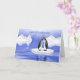 Fun anniversary greeting with two Penquins floating of Ice surrounded by icebergs in the artic. Graphic. Available in