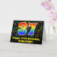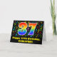 Este design de cartão de saudação feliz, empolgante e colorido, com tema de aniversário, apresenta um grande número "37" com um padrão inspirado no gradiente do espectro arco-íris. Também apresenta a mensagem "Feliz 37.º Aniversário", e um nome de destinatário editável. A frente também apresenta notas de música coloridas e padrões de símbolos. O dentro apresenta uma mensagem de saudação de aniversário personalizada, ou talvez possa ser apagado e deixado o vazio se uma mensagem for escrita manualmente. Um cartão de saudação de aniversário personalizado como este poderia ser usado para reconhecer um compositor de música, um cantor, um músico ou o trinta e sete anos de outra pessoa. [~Z0000426]