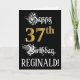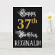 A frente deste ornamentado e design de cartão de saudação de aniversário opulente apresenta a mensagem "Feliz 37º Aniversário", juntamente com um nome de destinatário personalizado. Parte da mensagem está em um texto formal estilo script. O grande número "37º" apresenta um padrão de aparência falsa/imitado inspirado em ouro. O fundo é preto colorido. O dentro tem uma mensagem de saudação de aniversário personalizada, ou talvez possa ser apagado e deixado vazio se uma mensagem for escrita manualmente. Um cartão de cumprimentos de aniversário luxuoso e personalizado como este pode ser usado para celebrar o trinta e sete anos de alguém. [~Z0000559]