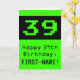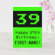 Cartão 39.o aniversário: Nerdy / Geeky Style "39" e Nome