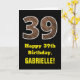 Cartão 39.o aniversário: Nome, Padrão de Grãos de Madeira