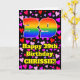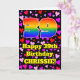 The front of this cheerful and fun birthday greeting card design features a large number “39” with a rainbow spectrum gradient inspired pattern, along with the message “Happy 39th Birthday,”, and an editable name. The background of the front features a pattern of heart shapes with colors like pink, purple, and red. The inside has a personalized birthday greeting message, or could perhaps be cleared and left blank if a message is to be written by hand instead. A joyful, editable birthday greeting card like this might be sent to celebrate somebody’s thirty-ninth birthday. [~Z0000551]