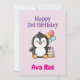 Cartão 3rd Birthday, Girl, Penguin, Personalized Flat