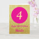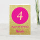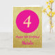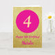 Cartão 4º aniversário feliz rosa quente e Dourado brilho