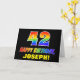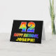 A frente deste design de cartões coloridos, divertidos e alegres de saudação de aniversário apresenta um grande número de "42" e a mensagem "FELIZ BIRTHDAY", ambos coloridos com um padrão inspirado no gradiente do espectro do arco-íris, juntamente com um nome de destinatário ousado e amarelo editável. A frente também tem um fundo minimalista, claro e preto. O dentro tem uma mensagem de saudação de aniversário personalizada, ou talvez pudesse ser apagado e deixado vazio se uma mensagem fosse escrita manualmente. Um vibrante cartão de aniversário personalizado como este pode ser uma maneira divertida de reconhecer o quarenta e segundo aniversário de alguém. [~Z0000472]