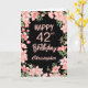 42º Aniversário Cartão de Aniversário Preto Floral de Cor-de-Água Rosa Pêssegada. Para mais personalização, clique no botão "Personalizar" e use nossa ferramenta de design para modificar este modelo.