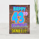 A frente deste design de cartão de saudação temático de aniversário divertido apresenta a mensagem "FELIZ 43RD BIRTHDAY", com uma aparência vibrante, colorida e inspirada no grafite, além de um nome de destinatário personalizado. O fundo da frente apresenta um padrão inspirado na parede do tijolo. O dentro tem uma mensagem de saudação de aniversário personalizada, ou talvez pudesse ser apagado e deixado vazio se uma mensagem for escrita manualmente. Um cartão de saudação de aniversário divertido e editável como este pode ser usado para celebrar o quarenta e terceiro aniversário de alguém. [~Z0000531]