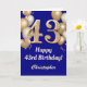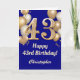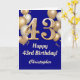 43º Cartão de Confetti de Balões Azuis e Dourados de Aniversário. Para mais personalização, clique no botão "Personalizar" e use nossa ferramenta de design para modificar este modelo.