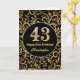 Cartão 43º Aniversário Padrão Floral Dourado e Preto