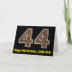 A frente deste design de carta de saudação, com tema de aniversário, divertida e rústica apresenta um grande número de "44" com um padrão de aparência de falso grão de madeira inspirado, junto com a mensagem "Feliz 44 de aniversário", e um nome personalizado. O dentro apresenta uma mensagem de saudação de aniversário editável, ou talvez pudesse ser apagado e deixado o vazio se uma mensagem fosse escrita manualmente. Um cartão de aniversário personalizado como este pode ser uma maneira divertida de enviar desejos de aniversário a alguém que comemora seus quarenta e quatro anos. [~Z0000431]