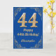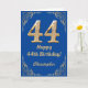 Cartão 44 Birthday Blue e Dourado quadro Glitter