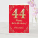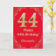 Cartão 44 Birthday Red and Dourado Glitter Frame