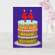 A frente deste design de cartão de saudação de aniversário divertido e alegre apresenta uma representação de um bolo de aniversário de três níveis com velas em forma de número no topo, mostrando a idade "44", juntamente com a mensagem "FELIZ 44 BIRTHDAY", e um nome de destinatário personalizado. O dentro tem uma mensagem de saudação de aniversário personalizada, ou talvez pudesse ser apagado e deixado vazio se uma mensagem fosse escrita manualmente. Um cartão de saudação de aniversário personalizado e otimista como este pode ser uma maneira divertida de entregar alguns desejos de aniversário a alguém que está celebrando seu quarenta e quarto aniversário. [~Z0000620]