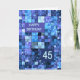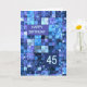 Cartão de aniversário de 45 anos. Deseje feliz aniversário com um cartão elegante. Os quadrados azuis e roxos se combinam para fazer um legal cartão de aniversário masculino. Deseje um feliz aniversário e sorria ao mesmo tempo.